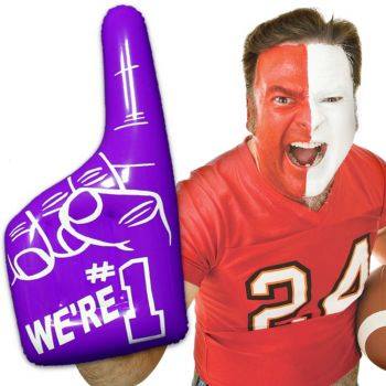 Match your favorite team’s colors with these inflatable #1 hands ! Inflated, 18″
