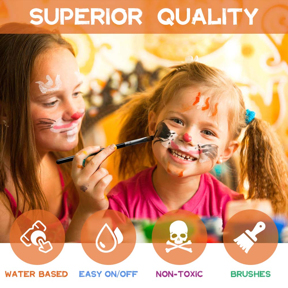 🎨【Easy Application & Removal】– Apply with included brushes, dries quickly without cracking. Washes off effortlessly with soap and water – no harsh rubbing.