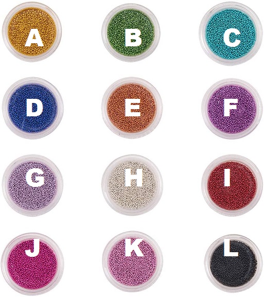 Micro Caviar Nail Beads measuring 6~8mm in diameter. These tiny caviar ball beads are suitable for applying on nail polish, gel and so on.