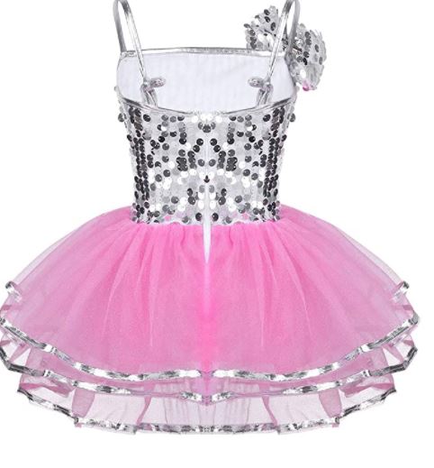 - Comes with a sequined bow, which needs to self-tie at one shoulder. 4 layers dress, top 3 mesh layers with silver trimmings hem, 1 lining. Matching a hair clip.