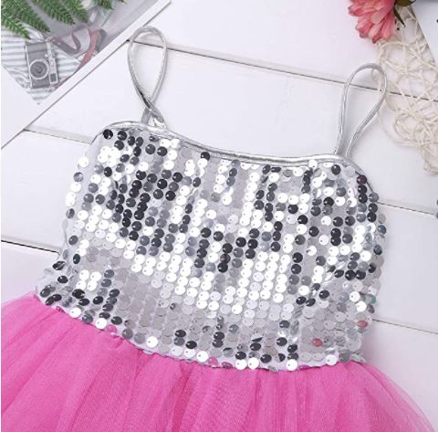 - Outfit is made of polyester, mesh and sequins material, hand wash recommended