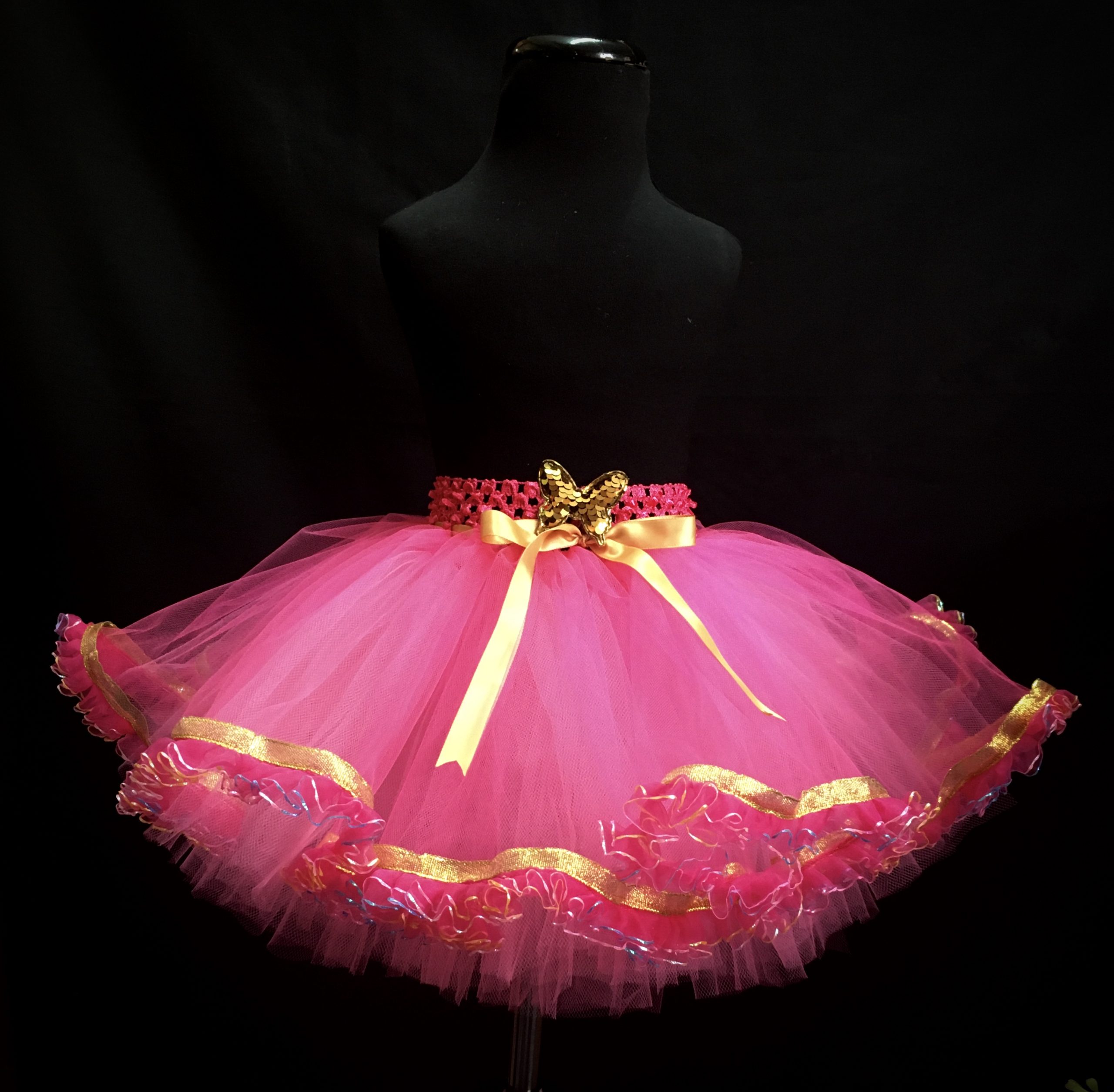 CUSTOM MADE Child Tutu – TODDLER Fuchsia Pink-Gold Ribbon Tutu fits up to 4yrs