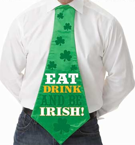 Eat, Drink and be Irish is the message on this shamrock tie.