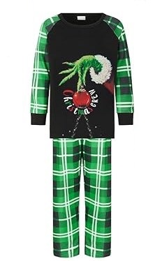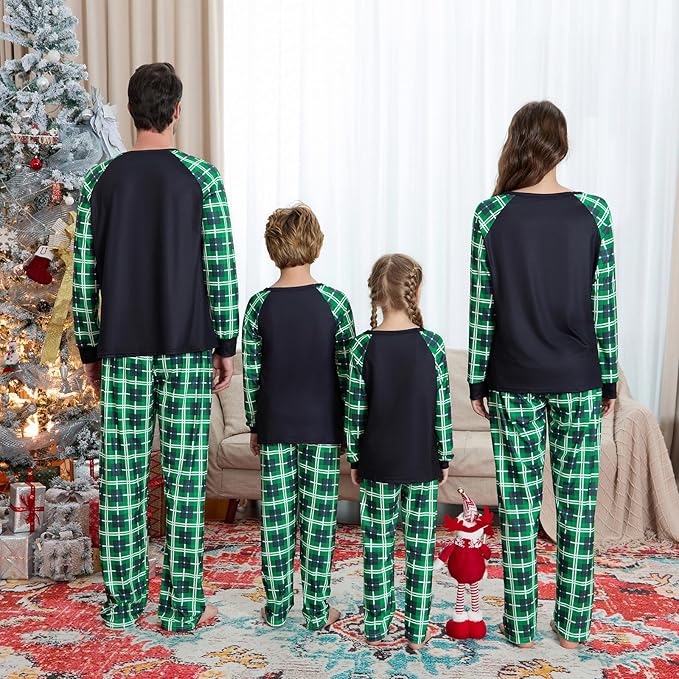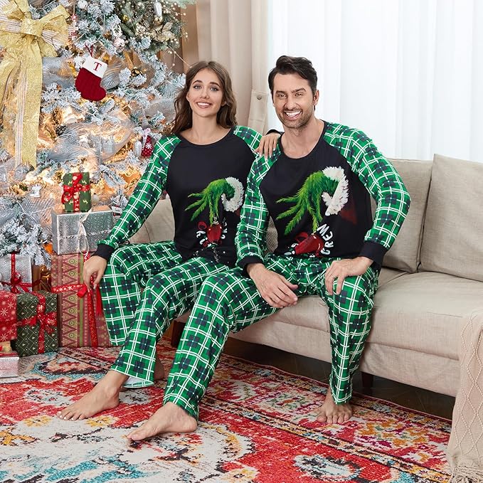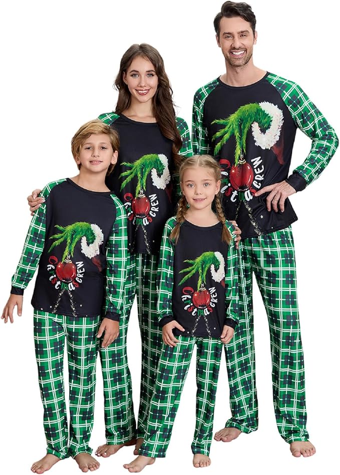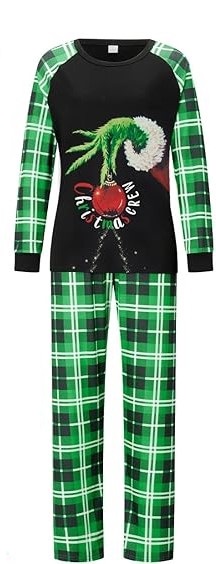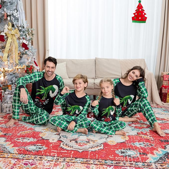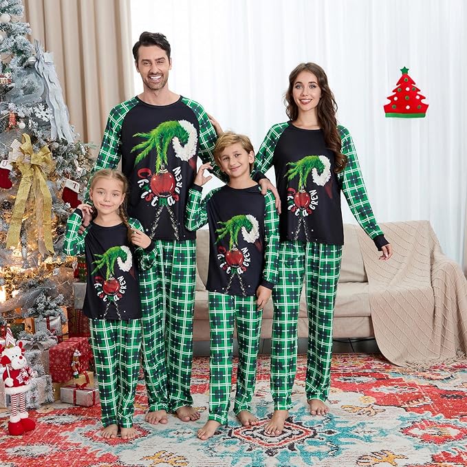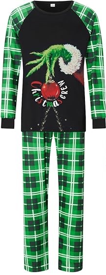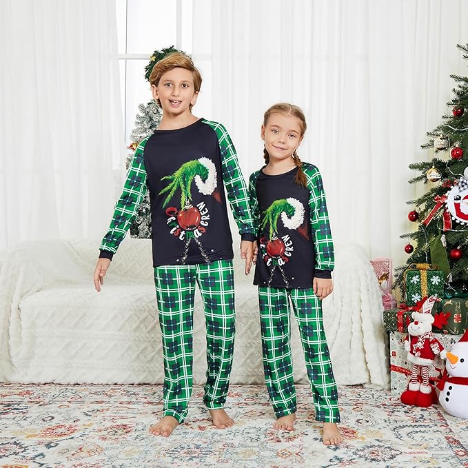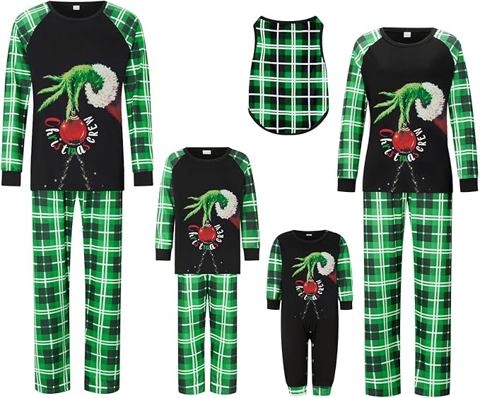 Christmas Matching Family Pajamas Sets GRINCH CHRISTMAS CREW BLACK-GREEN PLAID PAJAMAS