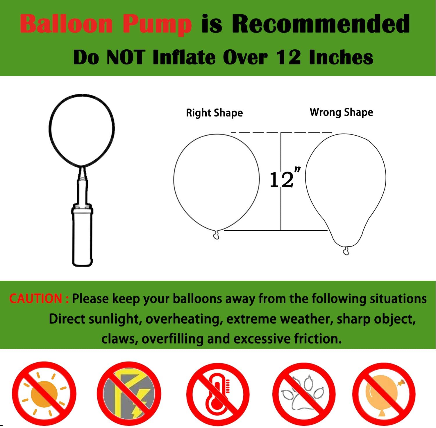 [THICKEN & LONGER-LASTING FUN & NO FADE]: Each balloon weight is 2.8g ± 0.1g, although the balloon is thickened, it also increases its elasticity, so it is still easily inflated by air or helium. Thickened balloon with strong elasticity makes our balloons less prone to air leakage, thus keeping their beautiful shape for a longer time. Meanwhile, unique and mature production technology makes our balloon color will not fade! Max inflation size is 12 inches, over inflate is not recommend!