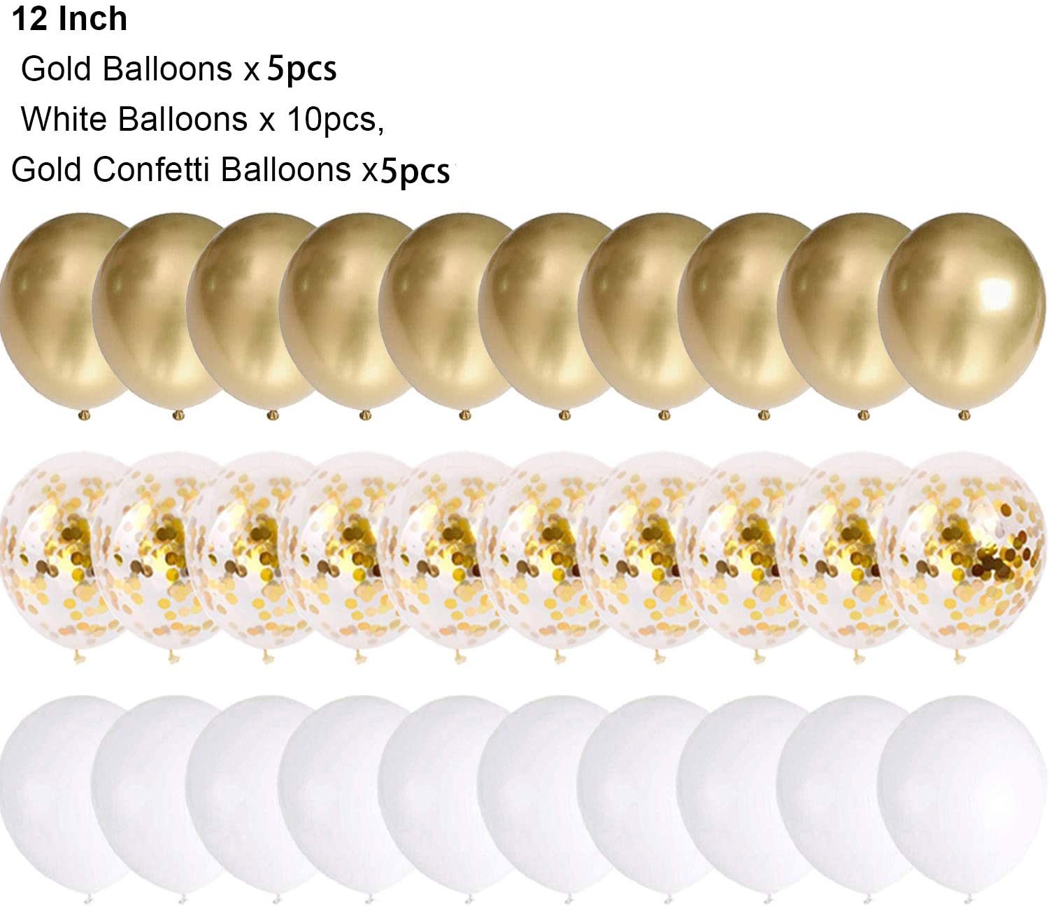 20pcs Latex Balloon – Gold, White, Gold Confetti