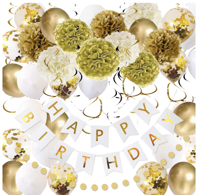 PARTY DECORATIONS – Happy Birthday Party Decoration – WHITE/GOLD
