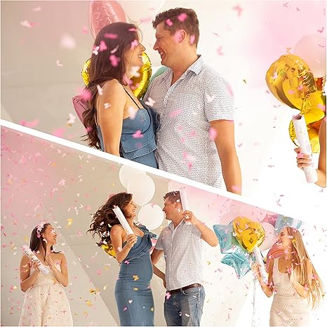 Safe and Easy To Use – Our heart-shaped confetti cannon gender reveal pink and blue work by simply twisting the bottom to release the contents.