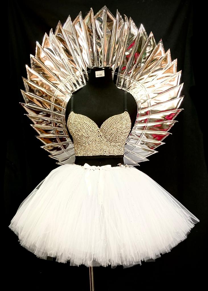Shown with but not included CORSET BUSTIER CROP TOP – Women Diamond bead pushup corset crop top – BLACK CLEAR and white tutu