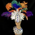 Tropical Ice Carnival Feather Rhinestone Headpiece + Collar Set