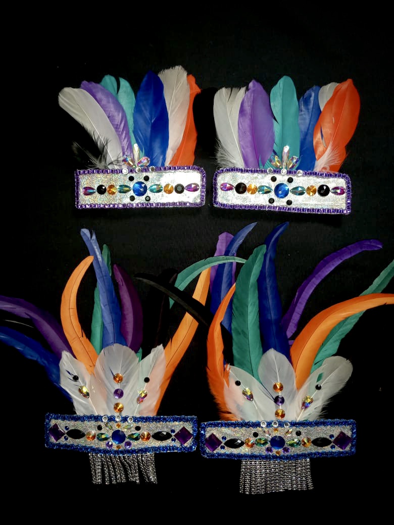 Tropical Ice Carnival Feather Rhinestone Hand and Foot Piece Set