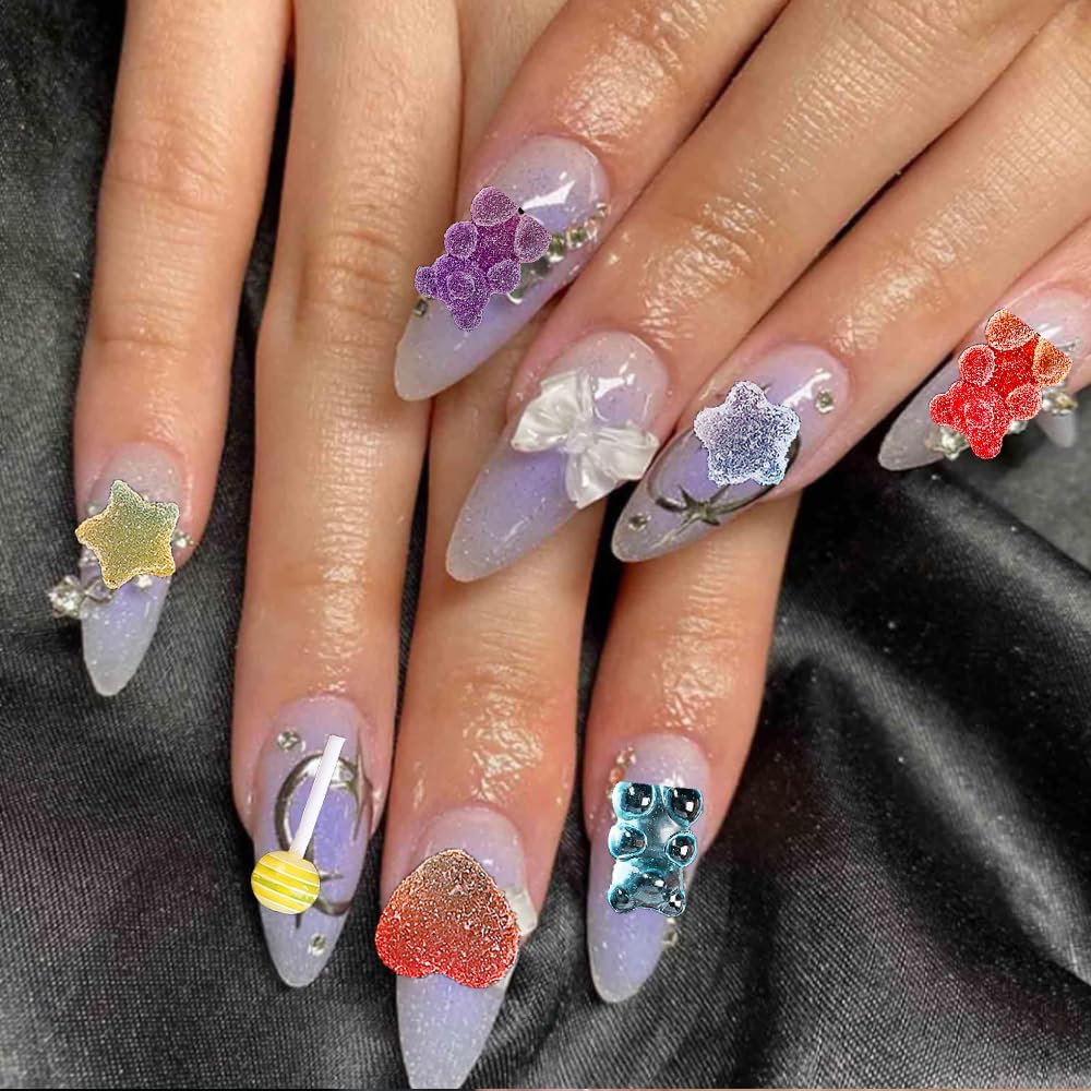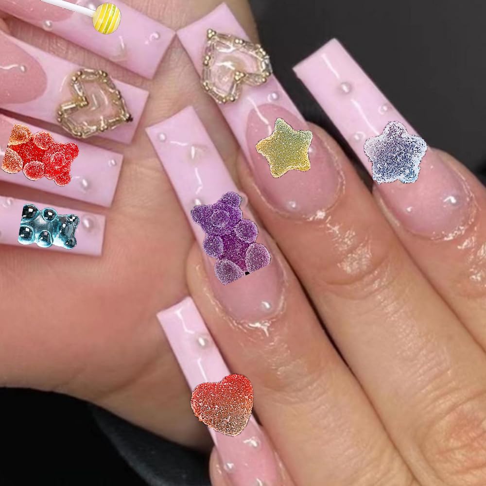 Versatile Usage: Perfect for natural, acrylic, and gel nails, these Candy Bear Nail Charms are ideal for various DIY projects, including nail art, scrapbooking, and jewelry making. Unleash your creativity and personalize any project with these charming decorations.