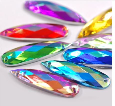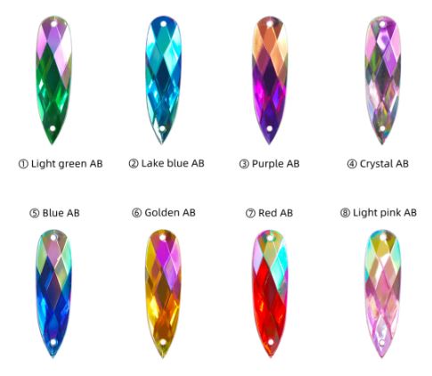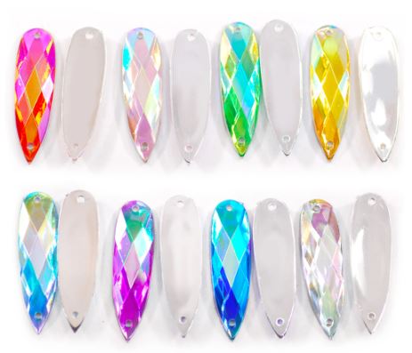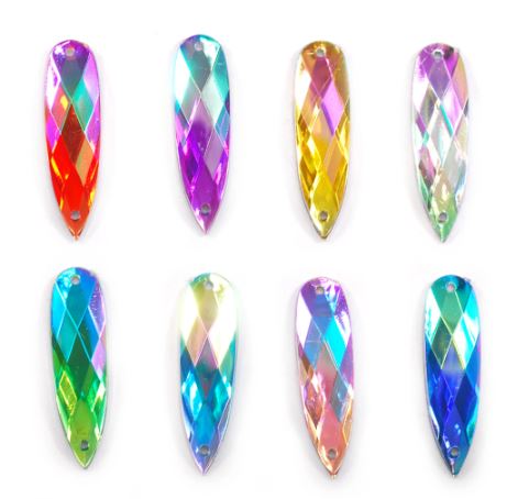 Double color long Tear Drop Acrylic Rhinestone 8x28mm 8pcs – AB