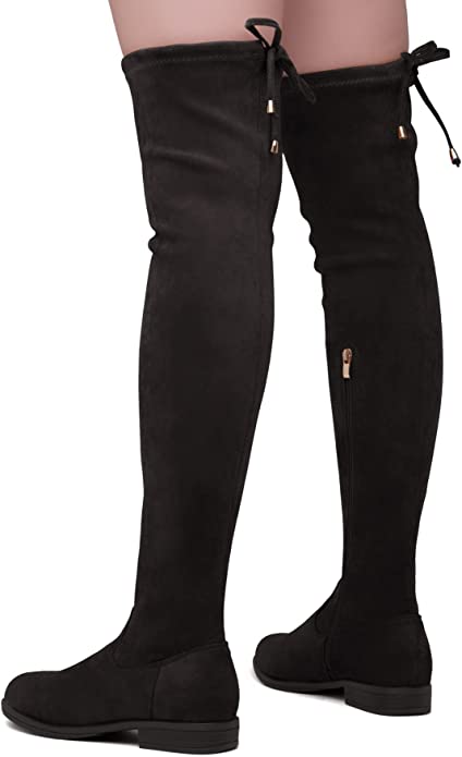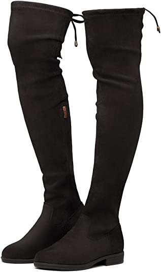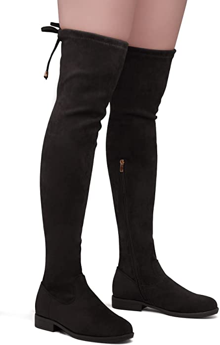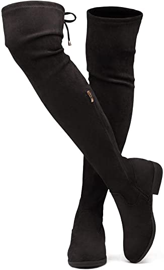 OVER KNEE BOOTS – BLACK – Suede Over Knee Block Heel Boots SIZE: 11