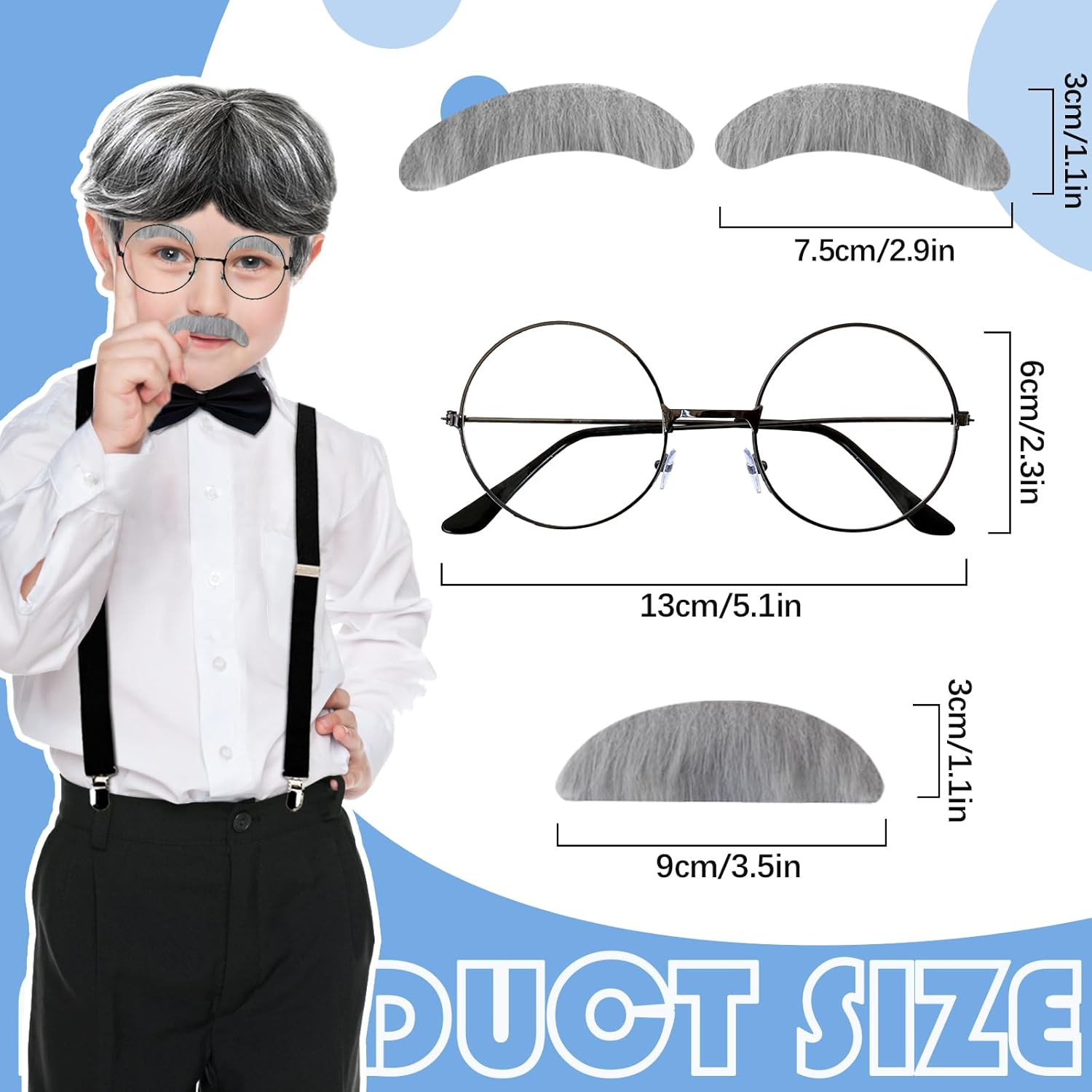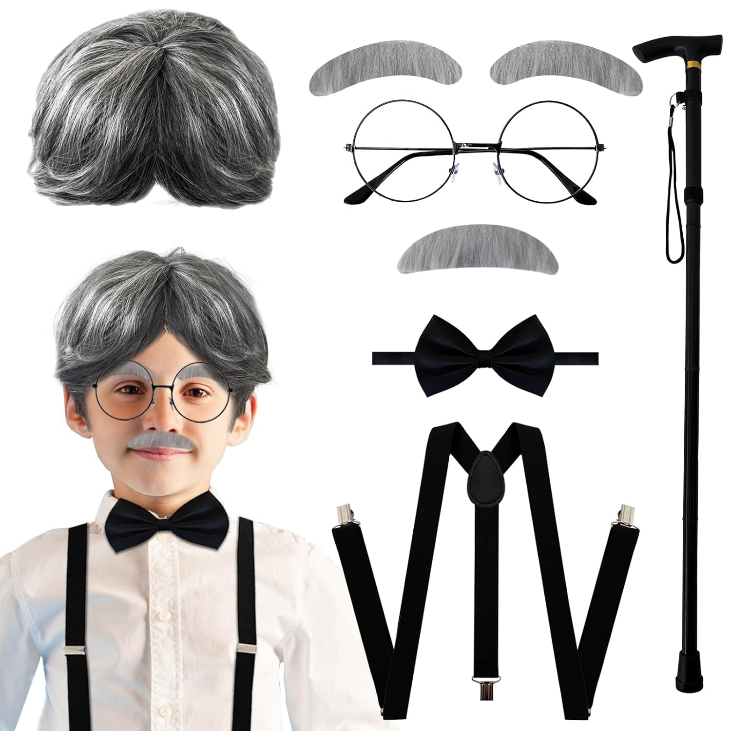 Complete costume: This old man costume not only has a wig, but also includes suspenders, bow ties, beards, eyebrows, cane, glasses, ensuring your child looks like a grandpa from head to toe, adding a humorous atmosphere to the 100th day of school activities.