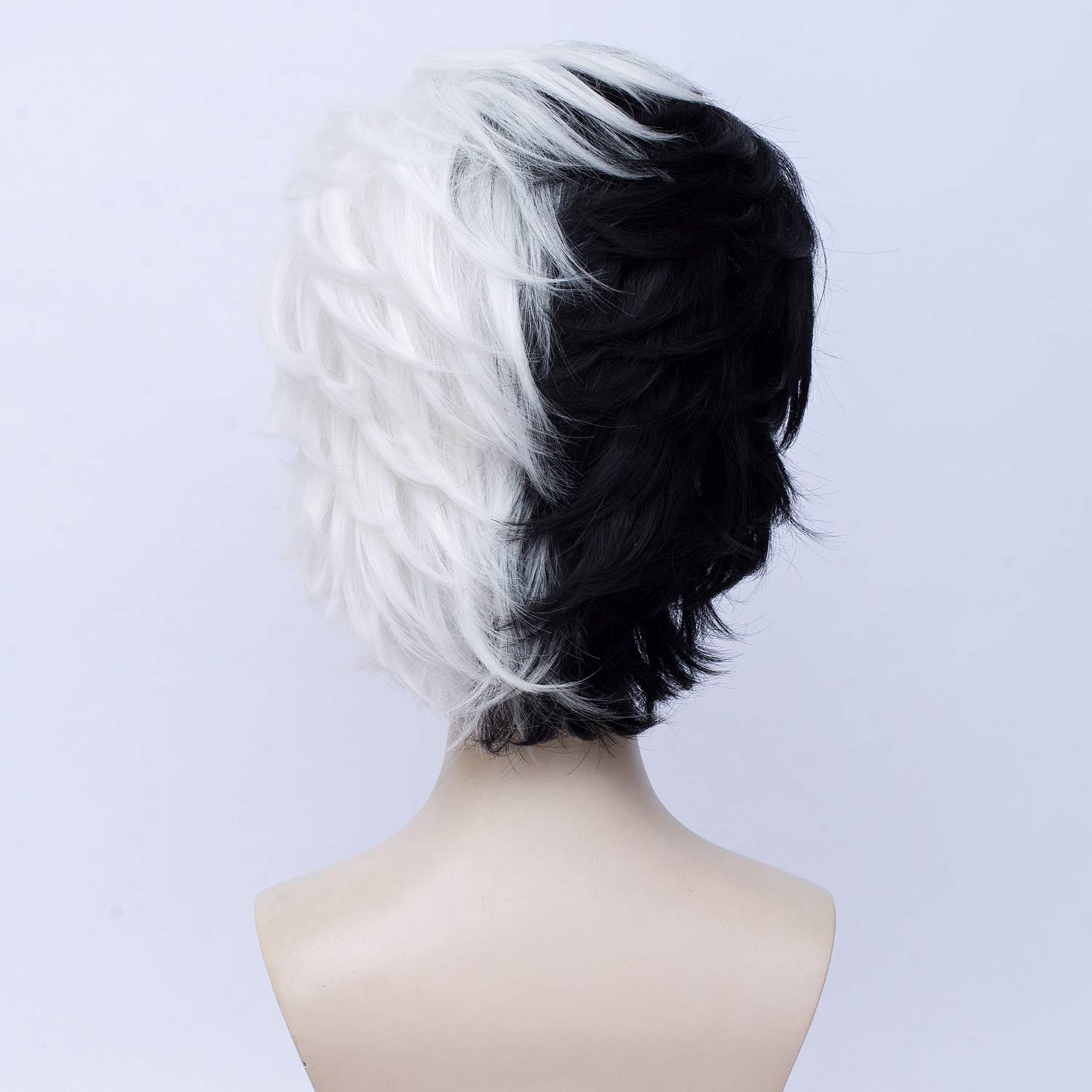 Short Layered Curly Half White Half Black Wig